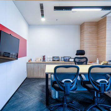 Grupo Bimbo's Gurgaon office spans 16,500 sq. ft., designed to reflect the brand’s global presence and dynamic work culture. The space combines open work areas, collaborative zones, and modern amenities for a productive environment. Thoughtfully planned interiors enhance functionality while promoting creativity and employee well-being.